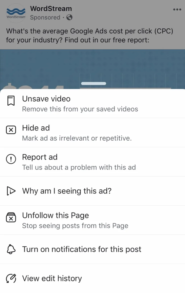 Tip 2: Click on the ellipsis from an ad in News Feed